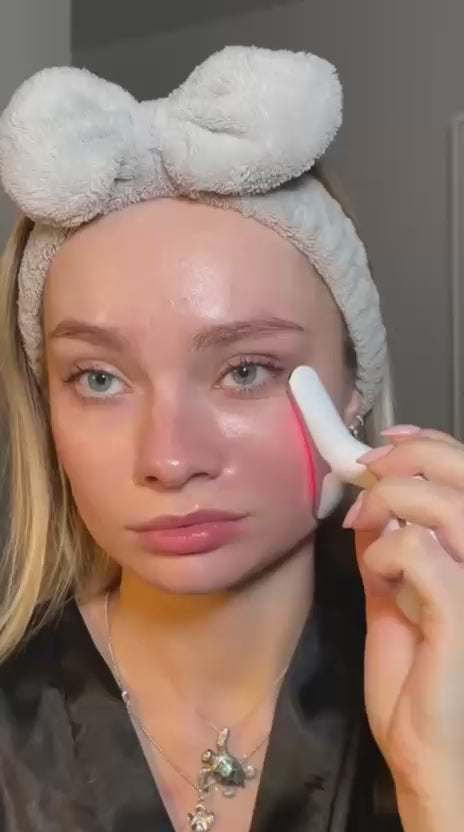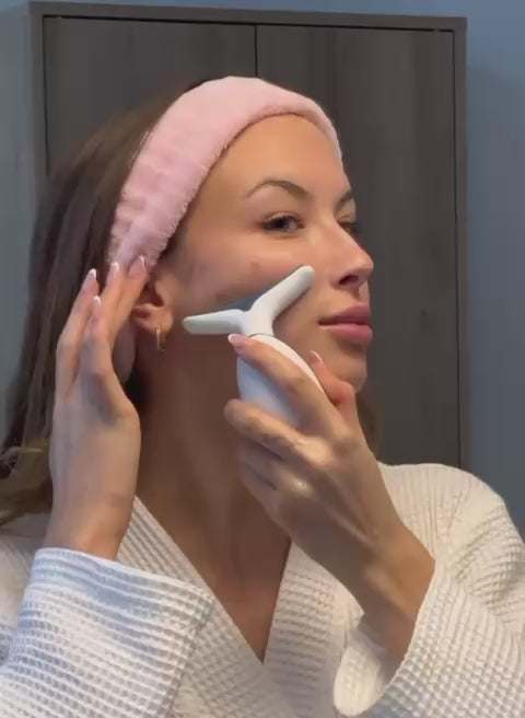 Aplica tu sérum o crema habitual y desliza el dispositivo sobre el rostro durante 5–10 minutos. Usa movimientos ascendentes y suaves para definir el rostro y mejorar la absorción de tus cosméticos.